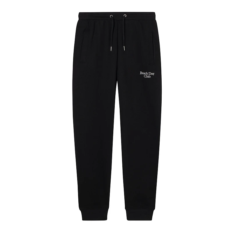 Ce jogger épuré arbore un imprimé brodé « Beach Day Club » subtil sur la cuisse. Coupe confortable avec cordon de serrage et poches latérales, parfait pour vos journées sans compromis entre style et confort.
