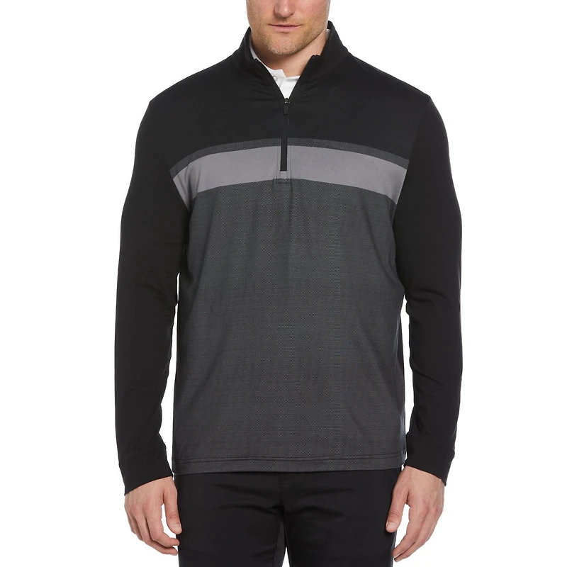 Restez à l'aise pendant les journées fraîches sur le parcours avec la veste de golf Ben Hogan pour hommes à rayures ombrées et fermeture éclair sur le quart. La veste de golf pour hommes est dotée d’un col montant qui aide à protéger votre cou du vent et de la pluie.