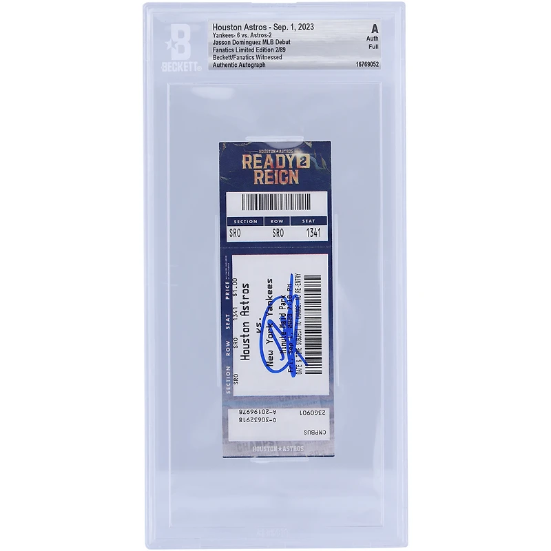 Billet autographié par Jasson Domínguez pour les débuts en MLB et le premier coup de circuit des Yankees de New York des Astros de Houston le 1er septembre 2023 - Édition limitée à 89 exemplaires - Authentifié par BAS