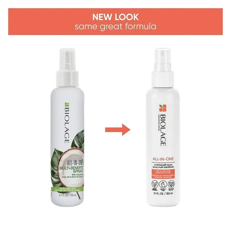 Le spray multi-bénéfices Biolage All-In-One avec infusion de noix de coco est pour tout le monde, partout et à tout moment. Quelle que soit la texture des cheveux, de bouclés à raides, de fins à épais ; quel que soit le moment où les cheveux sont mouillés ou secs, ce spray multi-tâches aidera à améliorer la brillance, à combattre les frisottis, à démêler, à protéger de la chaleur, à prévenir les pointes fourchues et plus encore !