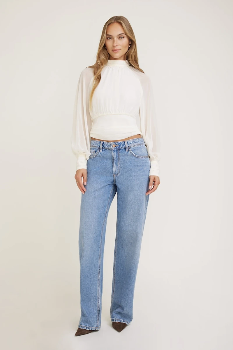 Cette blouse en chiffon léger est délicate au toucher. Elle offre une silhouette ajustée et des manches bouffantes pour une touche de romantisme. Portez-la avec une