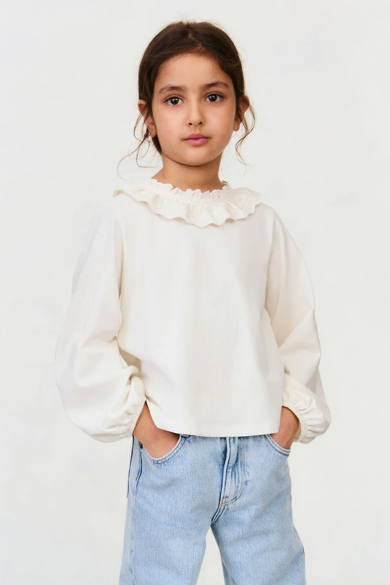 Blouse en doux jersey de coton de haute qualité. Modèle à encolure à volants avec col à bord festonné en matière tissée, agrémenté de broderie anglaise. Longues manches bouffantes terminées petit élastique habillé. Ouverture boutonnée dans le dos. Notre jersey de coton présente un GSM élevé, il est donc plus épais et durable, tout en restant très confortable. La collection H&M Adorables regroupe une sélection d'articles de qualité très confortables au charme intemporel.