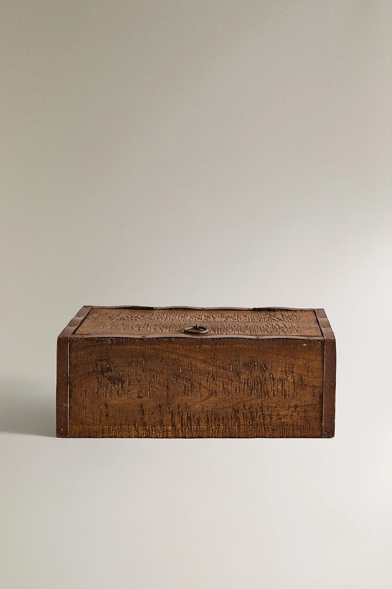 Boîte rectangulaire en bois avec finition effet vieilli.