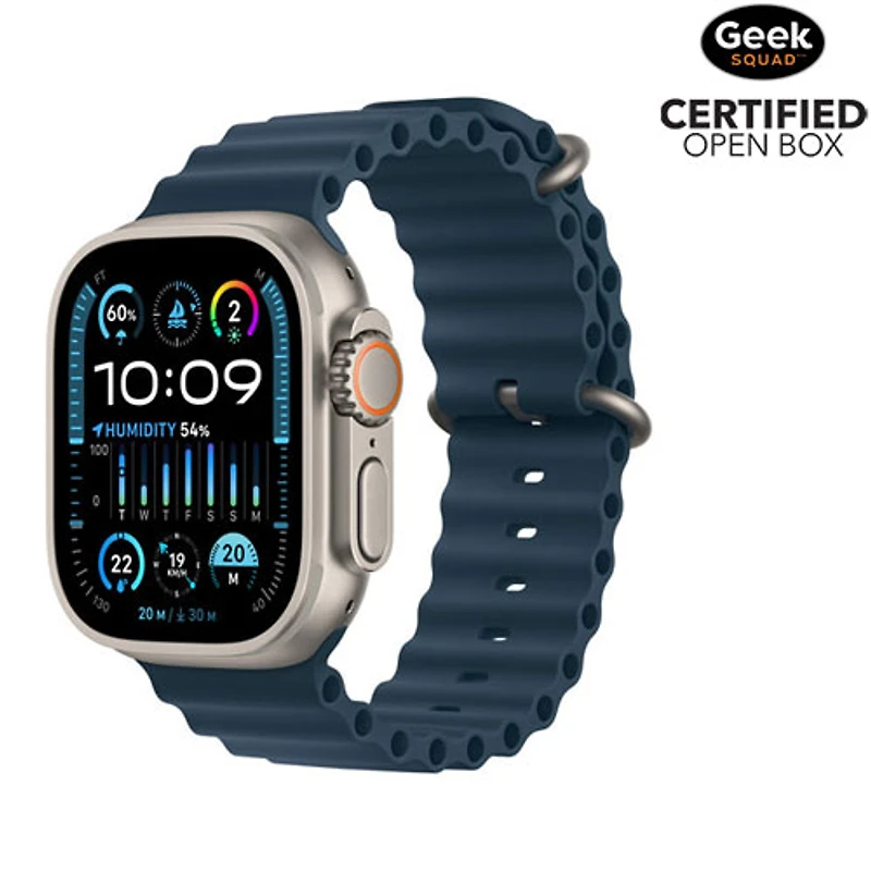 Produit boîte ouverte certifié Geek Squad. Détails ci-dessous. L'Apple Watch Ultra 2 est conçue pour les aventures en plein air et les entraînements intenses. Avec un boîtier en titane léger, jusqu'à 36 heures d'autonomie et un écran plus éclatant que jamais, cette montre intelligente est facile à utiliser pendant les activités intenses.