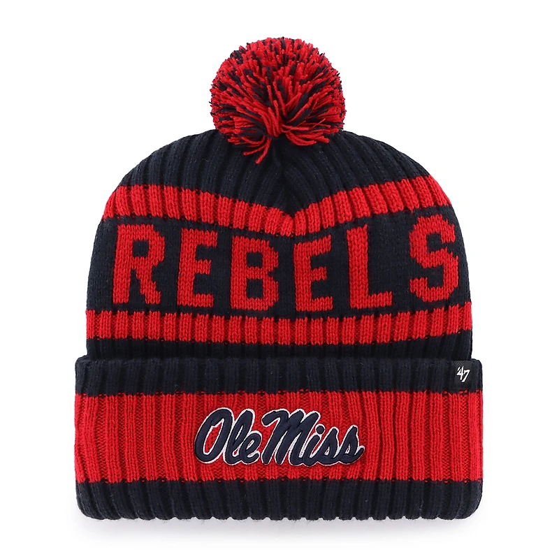 Bonnet à revers Ole Miss Rebels Bering bleu marine pour homme, modèle 47, avec pompon