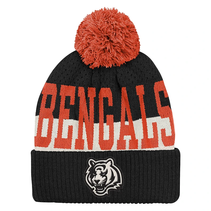 Bonnet en tricot à revers et pompon noir Cincinnati Bengals pour jeunes Outerstuff