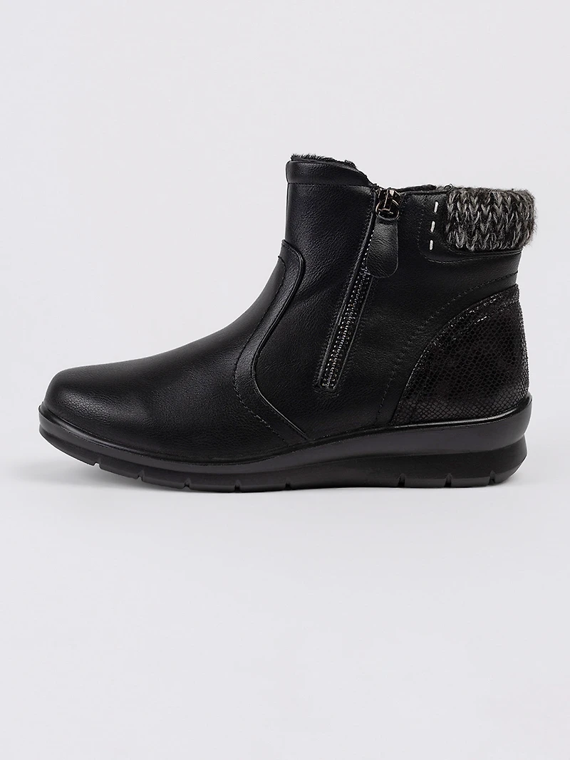Bottines lisses avec 2 fermetures zippées latérales et empiècement arrière à texture embossée scintillant. Elles comprennent un col bordé d’un textile tricoté contrasté et une semelle épaisse.