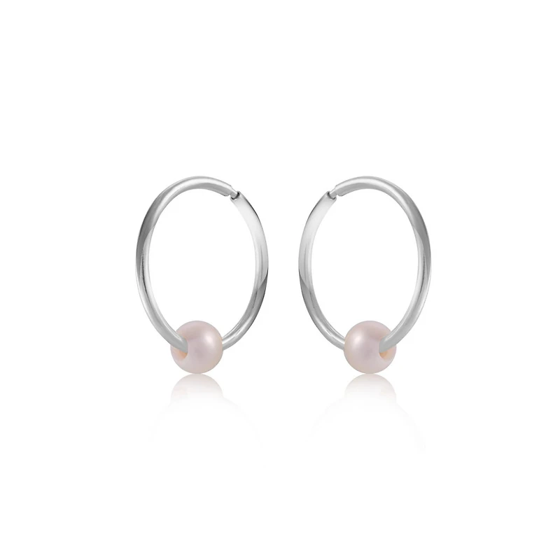 Boucles d'oreilles dormeuses de 11mm avec perle - Or blanc 10K. Color: blanc | Doucet Latendresse