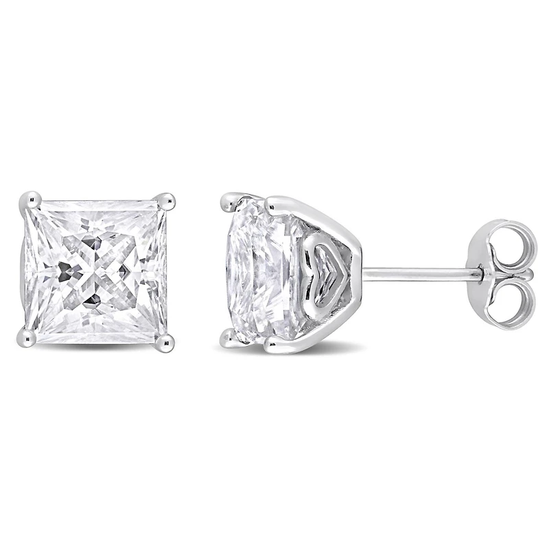 Boucles d'oreilles Miabella à Solitaire Moissanite de coupe-princesse en Argent Sterling