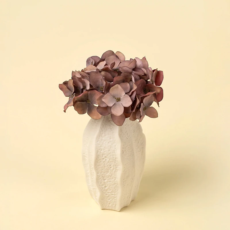 Apportez une touche de gaieté à votre intérieur avec le bouquet d’hydrangées mauve. Ses fleurs généreuses aux teintes vives offrent un rendu réaliste et volumineux. Parfait pour illuminer un vase décoratif, ce bouquet crée une ambiance fraîche et pleine de charme, sans entretien.