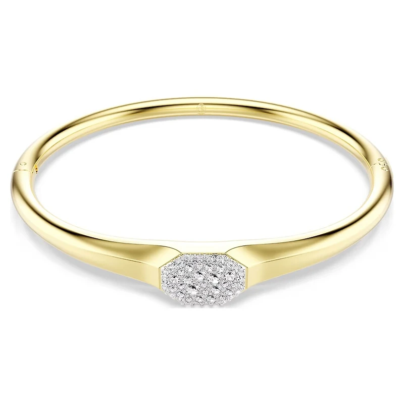 Ce bracelet-jonc dextera effilé est empreint d’élégance et d’énergie. sa silhouette au plaqué or 18 carats (750/1000) affiche des cristaux ronds aux dimensions variées, savamment sertis selon une disposition octogonale à l’aide de la technique de revêtement électrolyte rapide au rhodium de swarovski. doté d’une fermeture wonderclick, ce bijou incontournable se porte aussi bien de jour comme de nuit, sans effort. associez-le à la bague midi assortie pour un éclat maximal.