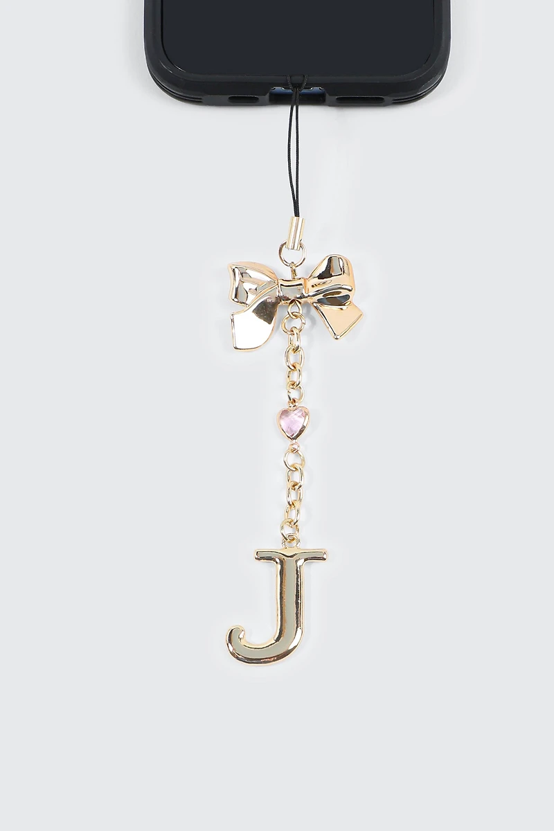 Breloque téléphone brillante lettre J avec boucle