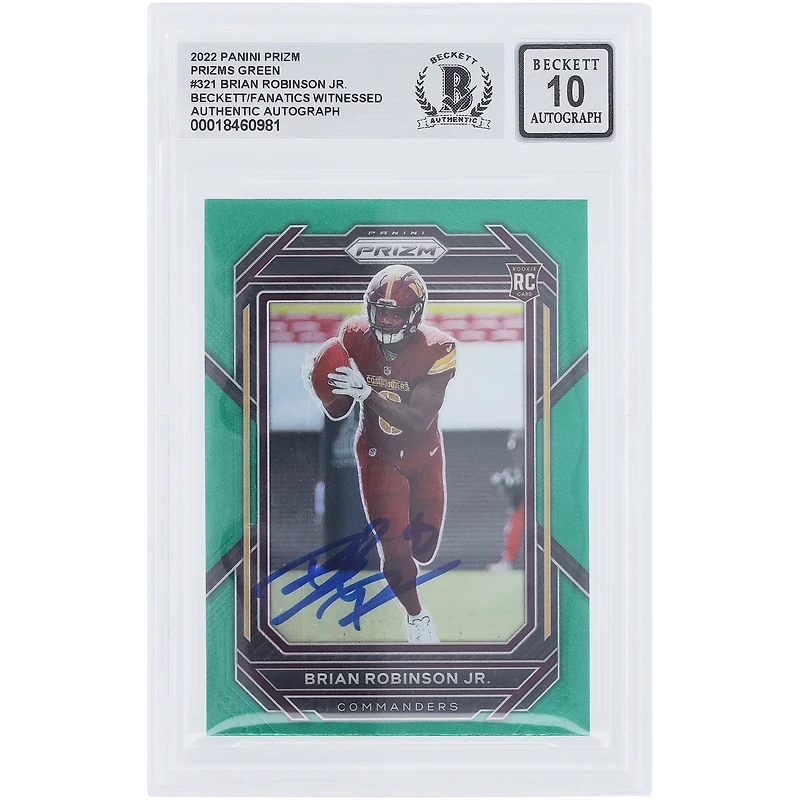 Brian Robinson Jr. Washington Commanders Autographié 2022 Panini Prizm Vert #321 Beckett Fanatics Witnessed Authenticated 10 Rookie Card