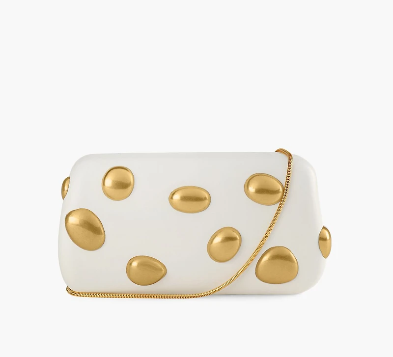Le sac Brianna de Wishbone propose une interprétation audacieuse et raffinée de l’accessoire de soirée. Sa silhouette compacte et structurée, rehaussée de clous décoratifs, est complétée par une fine chaîne, parfaite pour accompagner les sorties et les occasions spéciales.