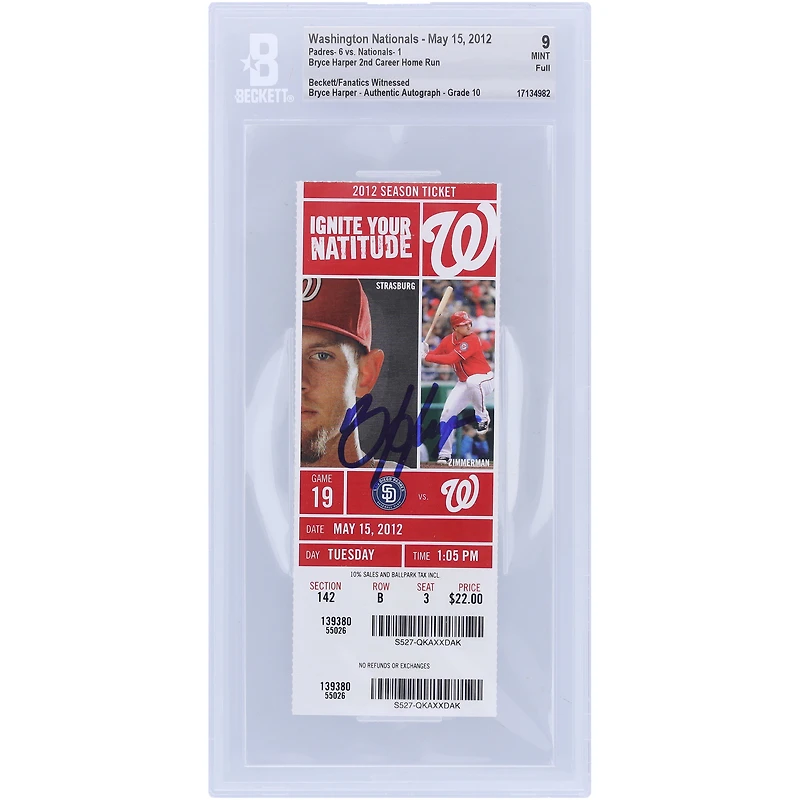 Bryce Harper Washington Nationals Autographed Beckett Fanatics Witnessed Authenticated 9/10 Ticket from May 15, 2012 - 2nd Career Home RunBryce Harper Washington Nationals Autographed Beckett Fanatics Witnessed Authenticated 9/10 Ticket from May 15, 2012 - 2nd Career Home RunBryce Harper Washington Nationals Autographed Beckett Fanatics Witnessed Authenticated 9/10 Ticket from May 15, 2012 - 2nd Career Home Run