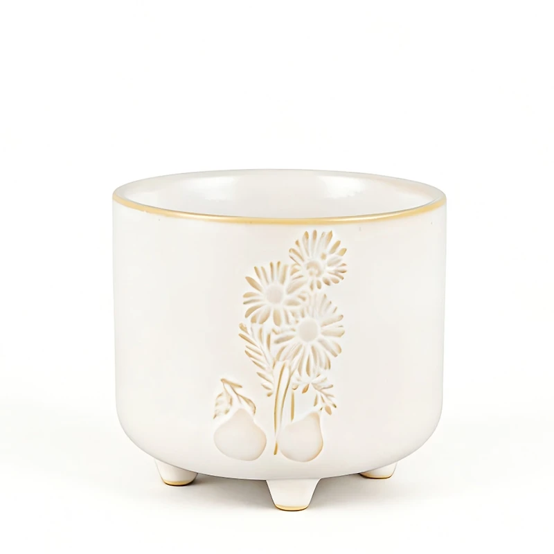 Ce cache-pot sur pied en céramique, orné de délicates marguerites, apporte charme et caractère à votre intérieur. Parfait pour accueillir des plantes naturelles ou artificielles, il combine fonctionnalité et design poétique pour sublimer n’importe quel espace.