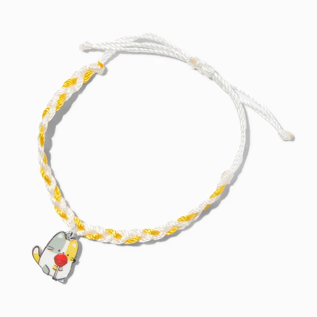 Calico Cat Lollipop Charm Yellow Braided Adjustable Bracelet