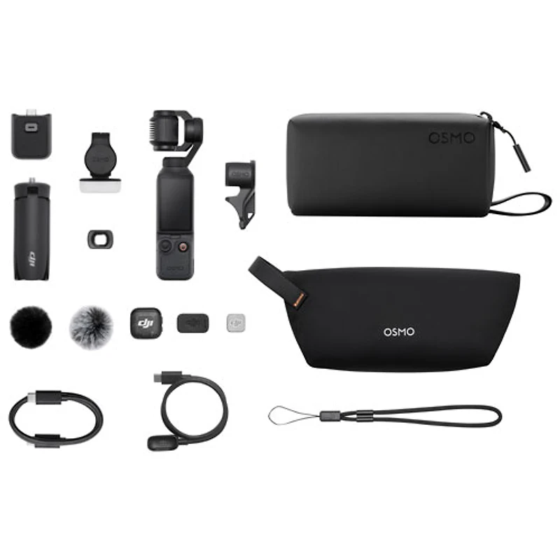 Caméra portative 4K à stabilisation sur 3 axes Osmo Pocket 4 de DJI avec transmetteur DJI Mic 3 et objectif Osmo 3