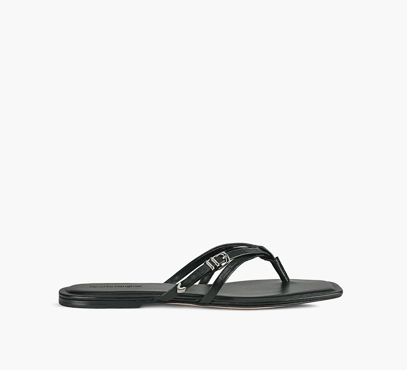Les sandales Cameron de Favorite Daughter revisitent la silhouette tong classique avec une allure soignée, pensée pour le quotidien. Dotées de fines brides rehaussées de détails métalliques signature, elles offrent un style épuré et facile à porter. Une assise plantaire coussinée assure un confort agréable tout au long de la journée, faisant de Cameron un choix polyvalent pour la saison estivale.