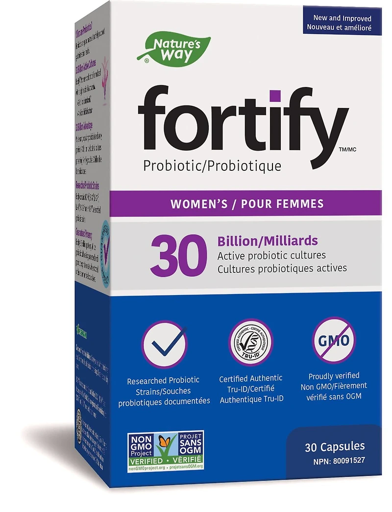 Le Probiotique Fortify™ Femmes contient 30 milliards de cultures actives pour aider à soutenir la santé intestinale/gastro-intestinale.