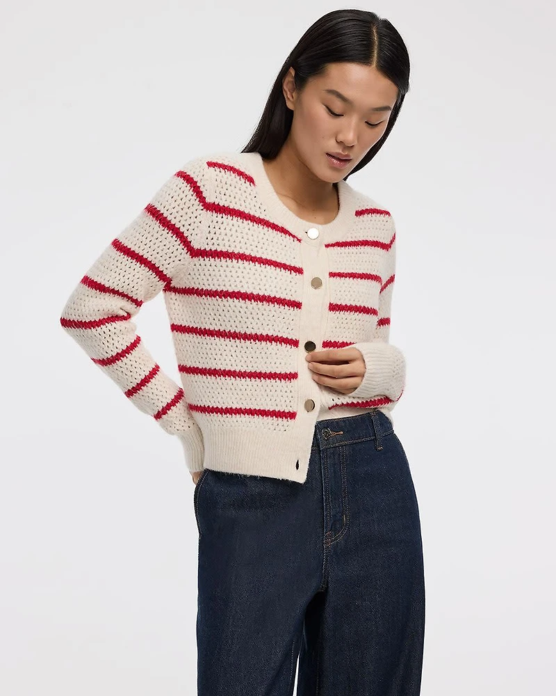 Ce cardigan ajusté conçu en mailles de fantaisie et doté d'un classique col rond et de manches longues est idéal pour le quotidien.