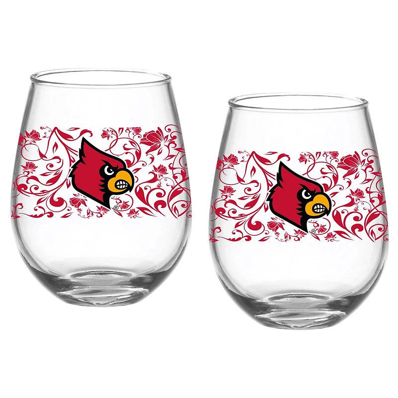 Cardinals de Louisville, paquet de deux 15oz. Ensemble de verres floraux sans pied