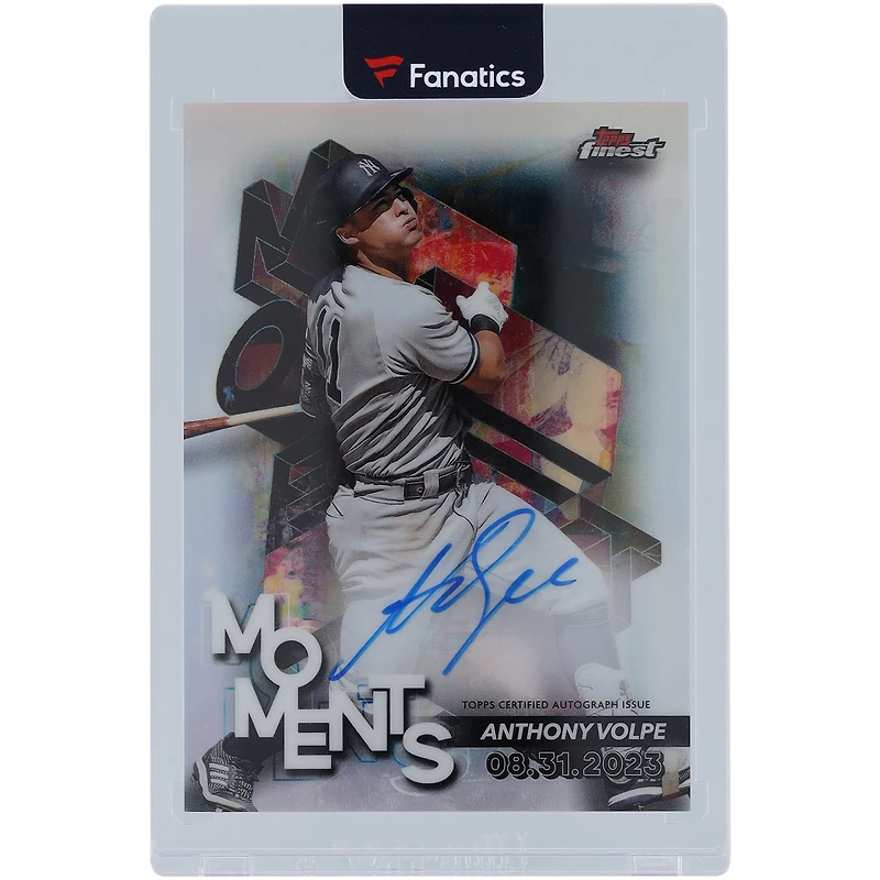 Cette carte Topps Finest Moments 2024 #FMA-AV dédicacée par Anthony Volpe vous permettra d'afficher votre passion pour les Yankees de New York. Présentée dans un étui acrylique magnétique pour une meilleure conservation, cette carte saisissante arbore également la signature unique d'Anthony Volpe, ce qui en fait un objet de collection incontournable.