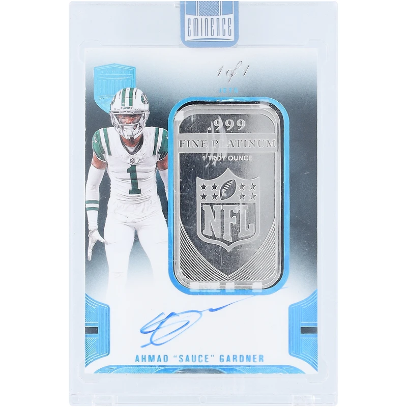 Carte autographiée par Ahmad Gardner des New York Jets, édition 2024 Panini Eminence 1 Troy Oz Platinum Bar Relic #SAB-AGR #1/1Carte autographiée par Ahmad Gardner des New York Jets, édition 2024 Panini Eminence 1 Troy Oz Platinum Bar Relic #SAB-AGR #1/1Carte autographiée par Ahmad Gardner des New York Jets, édition 2024 Panini Eminence 1 Troy Oz Platinum Bar Relic #SAB-AGR #1/1