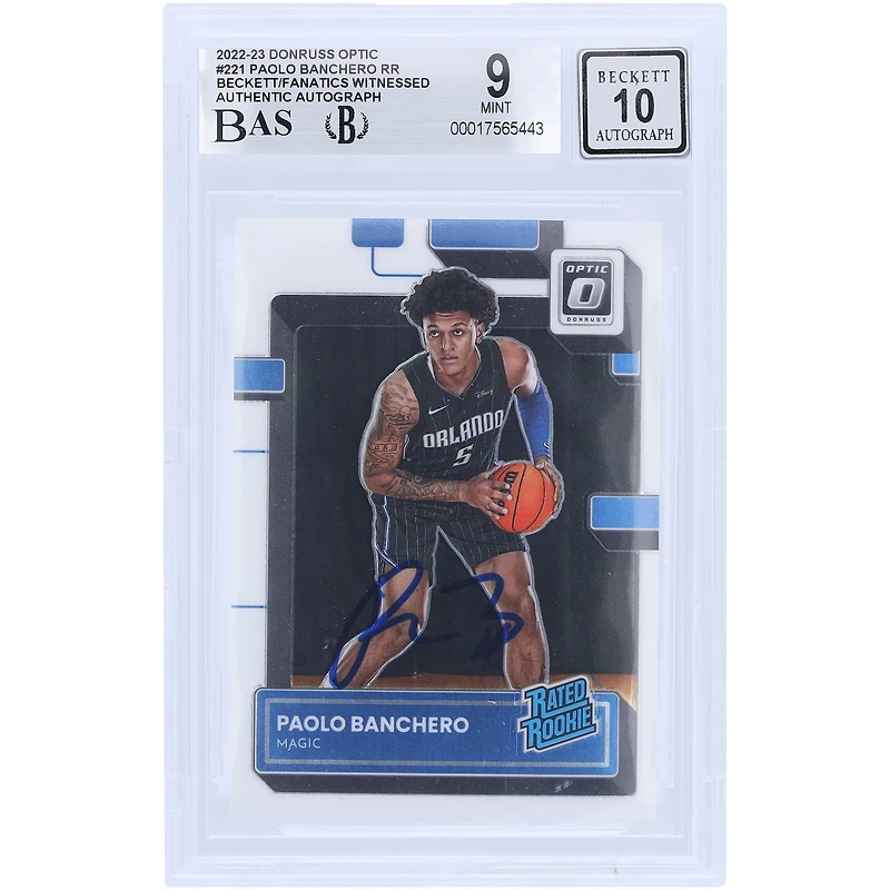 Carte de recrue 9/10 autographiée par Paolo Banchero Orlando Magic 2022-23 Panini Donruss Optic #221 Beckett Fanatics Witnessed Authenticated