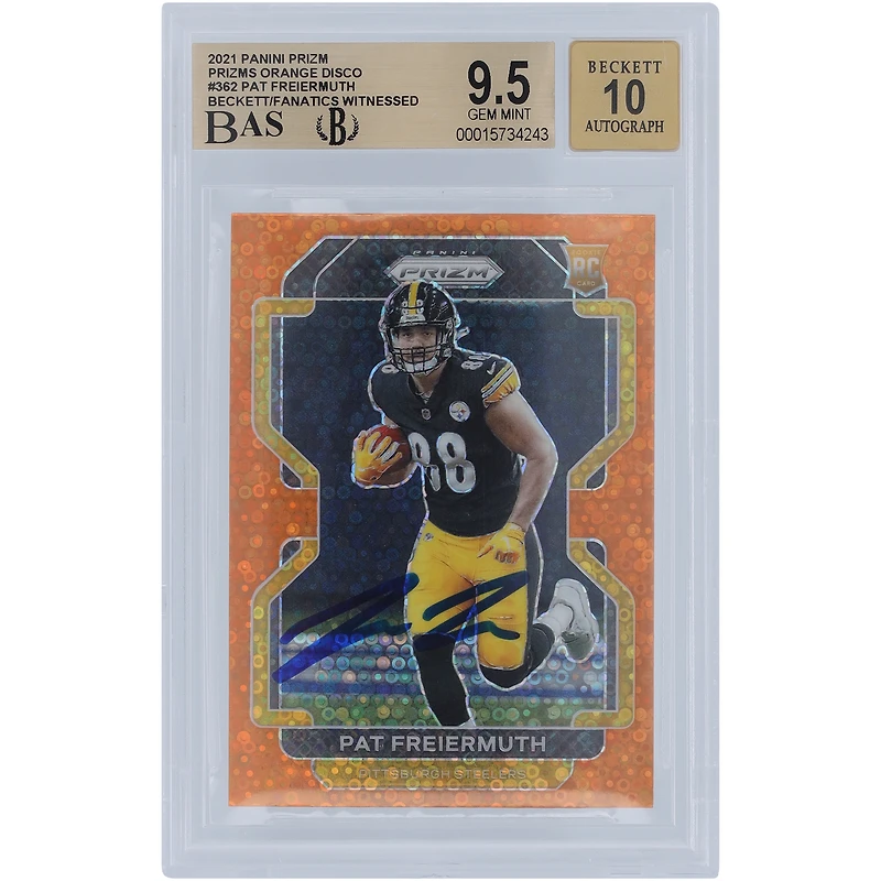 Carte de recrue autographiée Panini Prizm Orange Disco #362 2021 des Steelers de Pittsburgh, 9,5/10, témoin des fanatiques de Beckett