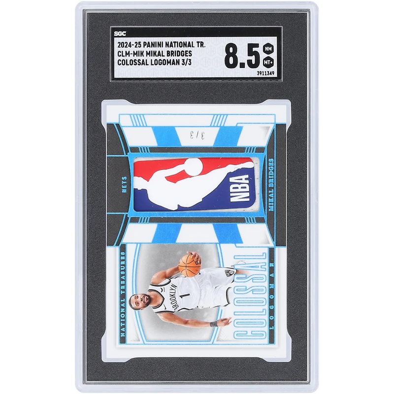 Carte Mikal Bridges Brooklyn Nets 2024-25 Panini National Treasures Colossal Logoman NBA Logo Relic #CLM-MIK #3/3 authentifiée SGC 8.5