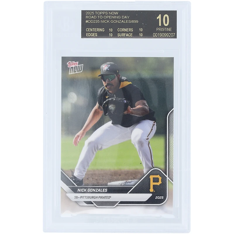 Carte Nick Gonzales Pittsburgh Pirates 2025 Topps Now Road to Opening Day Black Label #OD-235, authentifiée BGS 10 - Sous-notes 10,10,10,10