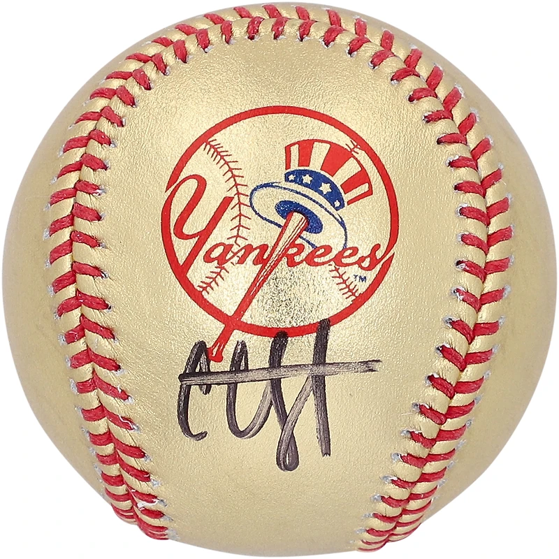 Casquette de baseball en cuir doré Rawlings autographiée par CC Sabathia des Yankees de New York