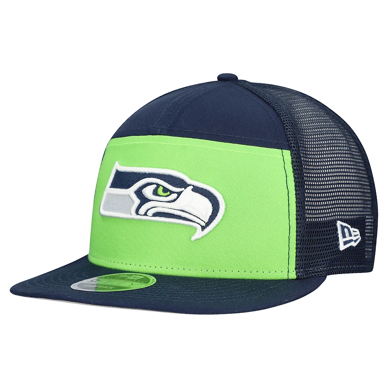 Casquette snapback 9FIFTY Outdoor Split Panel New Era pour homme, vert fluo/bleu marine universitaire, Seattle Seahawks