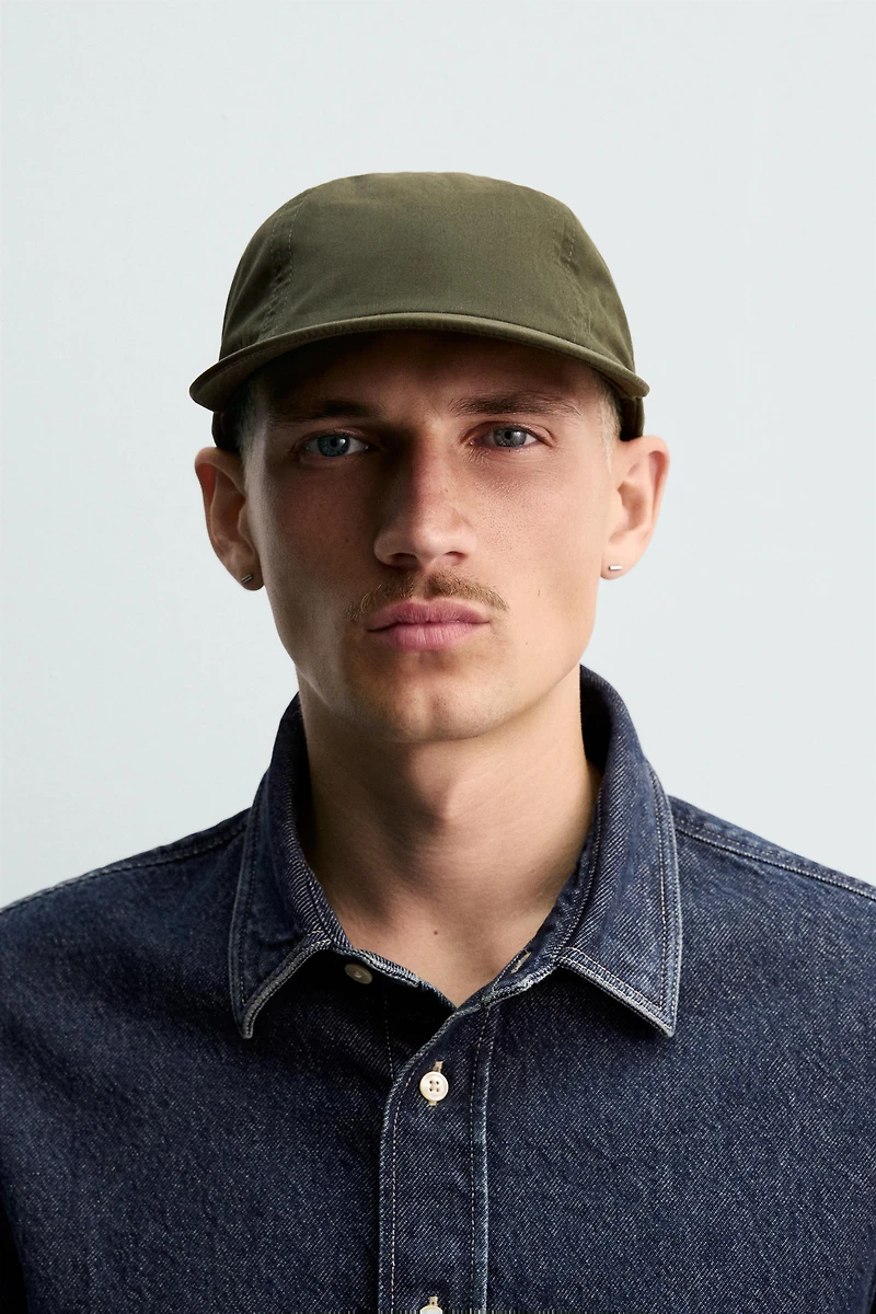 Casquette à cinq panneaux avec visière confectionnée en tissu technique léger. Ajustement à l'arrière.