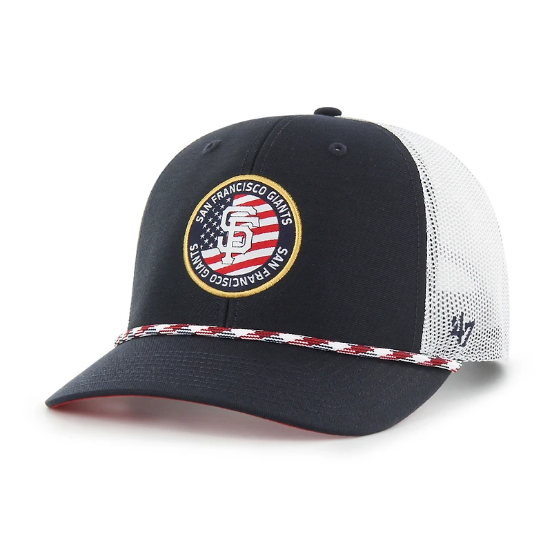Casquette trucker ajustable pour homme, modèle 47, bleu marine, San Francisco Giants, avec écusson syndical.
