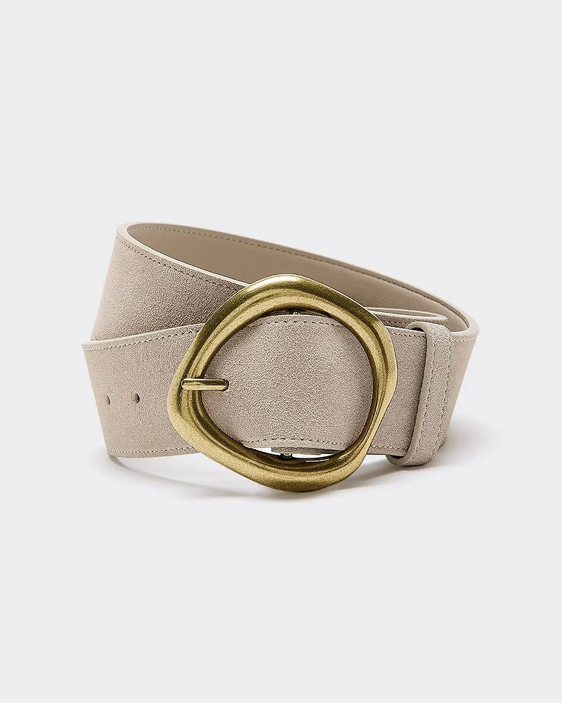 Cette ceinture tendance en suède véritable saura rehausser n'importe quelle tenue.