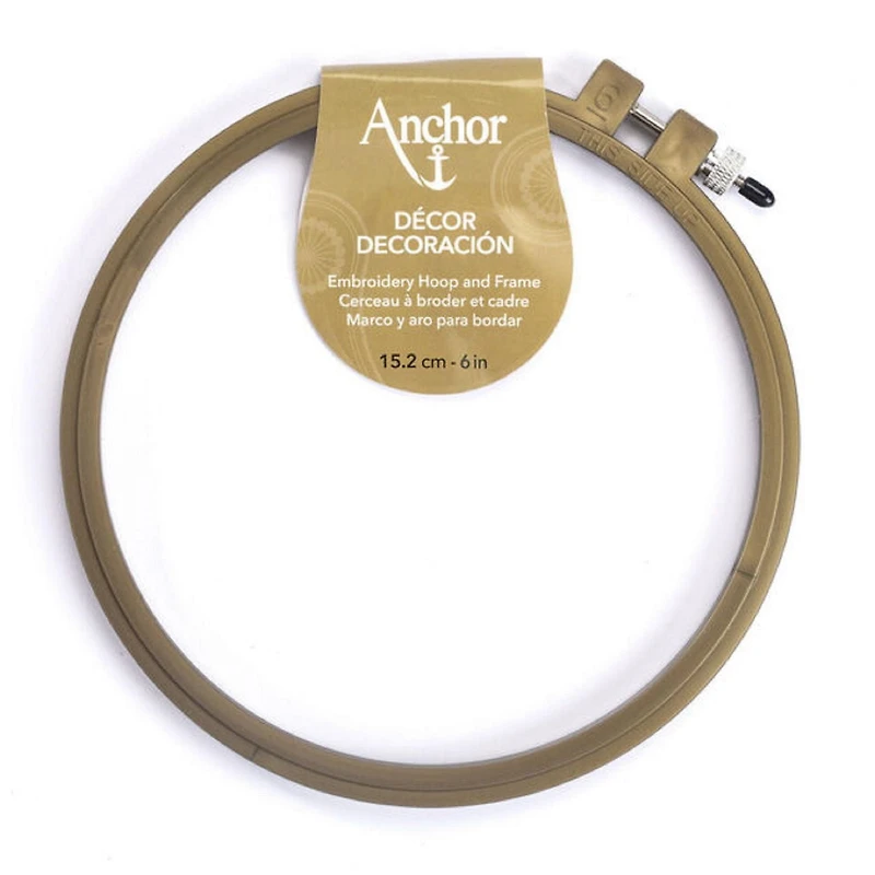 Anchor Embroidery Hoops feature a 'Super Grip Lip' that holds fabric securely in place without distorting or snagging your fabric. Incredibly durable and flexible, completely safe for fine embroidery fabrics with trouble free screw fastener. Available in 6", 8" and 10" sizes
