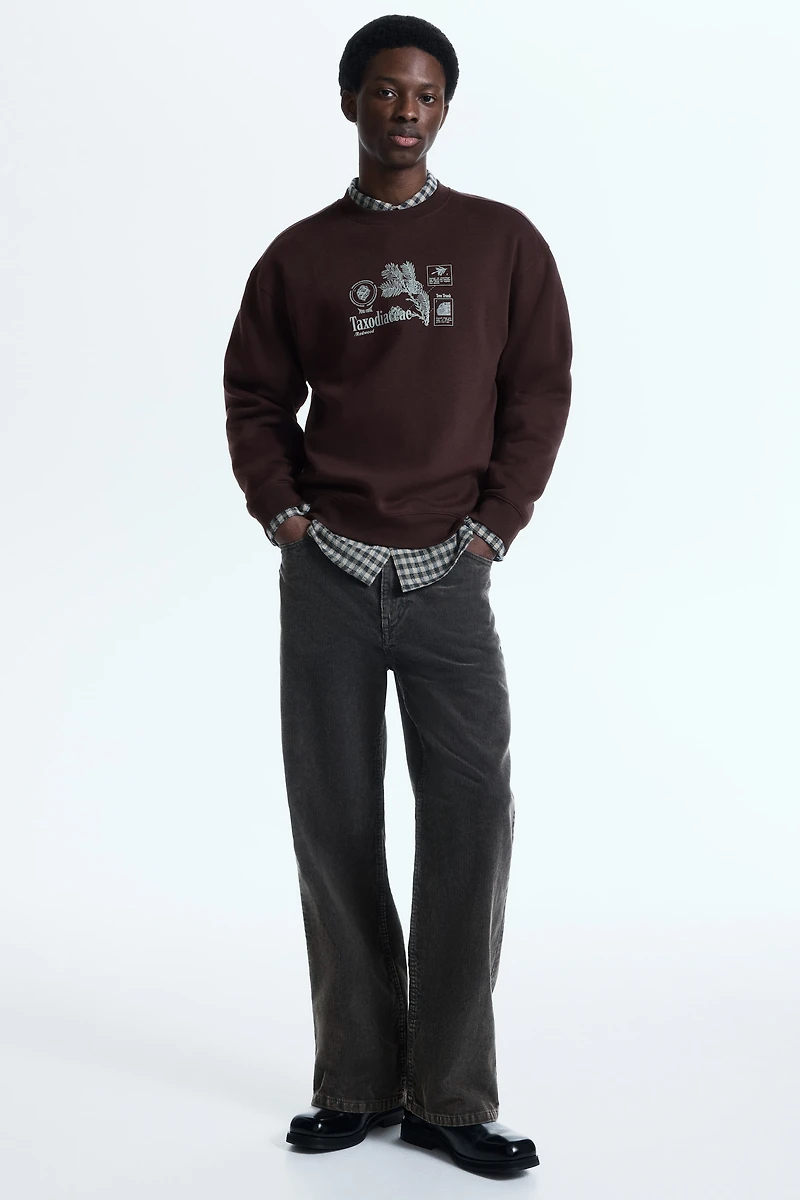 Chandail en molleton d'épaisseur moyenne à l'intérieur doux et brossé, réalisé à partir de coton mélangé, avec motif imprimé. Modèle avec ourlet côtelé autour de l'encolure ronde. Ourlet côtelé aux poignets et à la base. Coupe flottante qui offre de l'ampleur sans être trop grande.