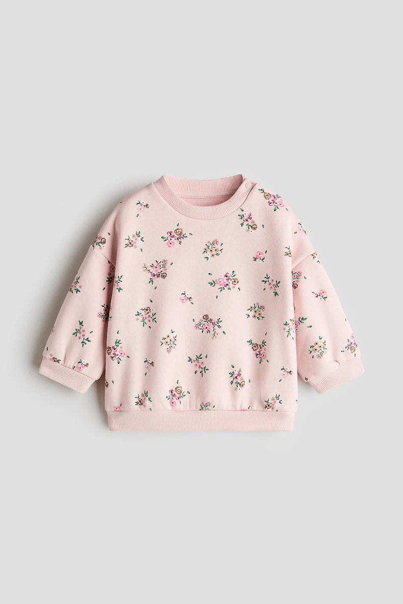 Chandail en molleton imprimé à l'intérieur doux et brossé. Modèle avec ourlet côtelé autour de l'encolure ronde, boutons-pression sur une épaule (sauf tailles 2 à 4 ans), emmanchures descendues et manches longues. Finition côtelée aux poignets et au bas.