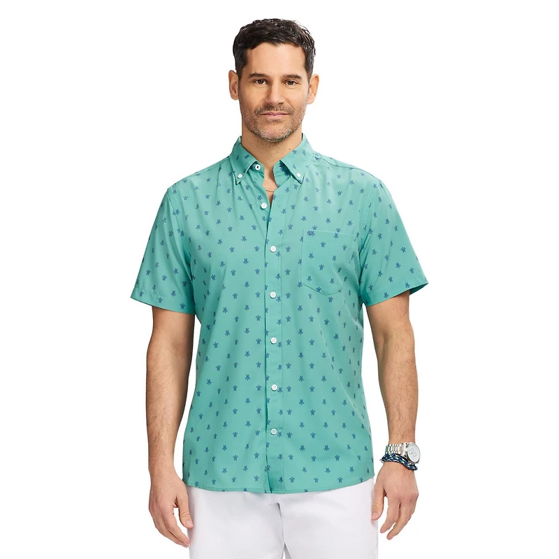 Décontracté et complètement confortable. Avec une coupe athlétique dans un mélange de coton léger à la fois rafraîchissant et respirant, cette chemise boutonnée à manches courtes facilite le style par temps chaud.