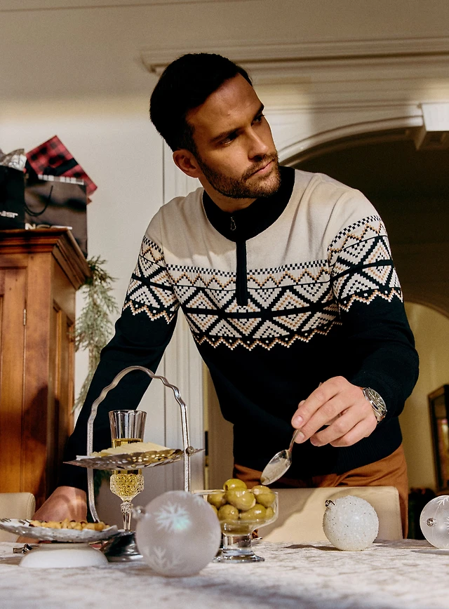 Chandail noir fairisle à demi fermeture éclair