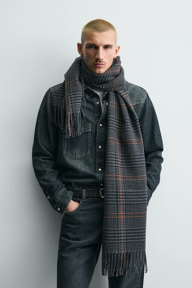 Écharpe confectionnée en tissu avec un toucher doux. Fini à franges.