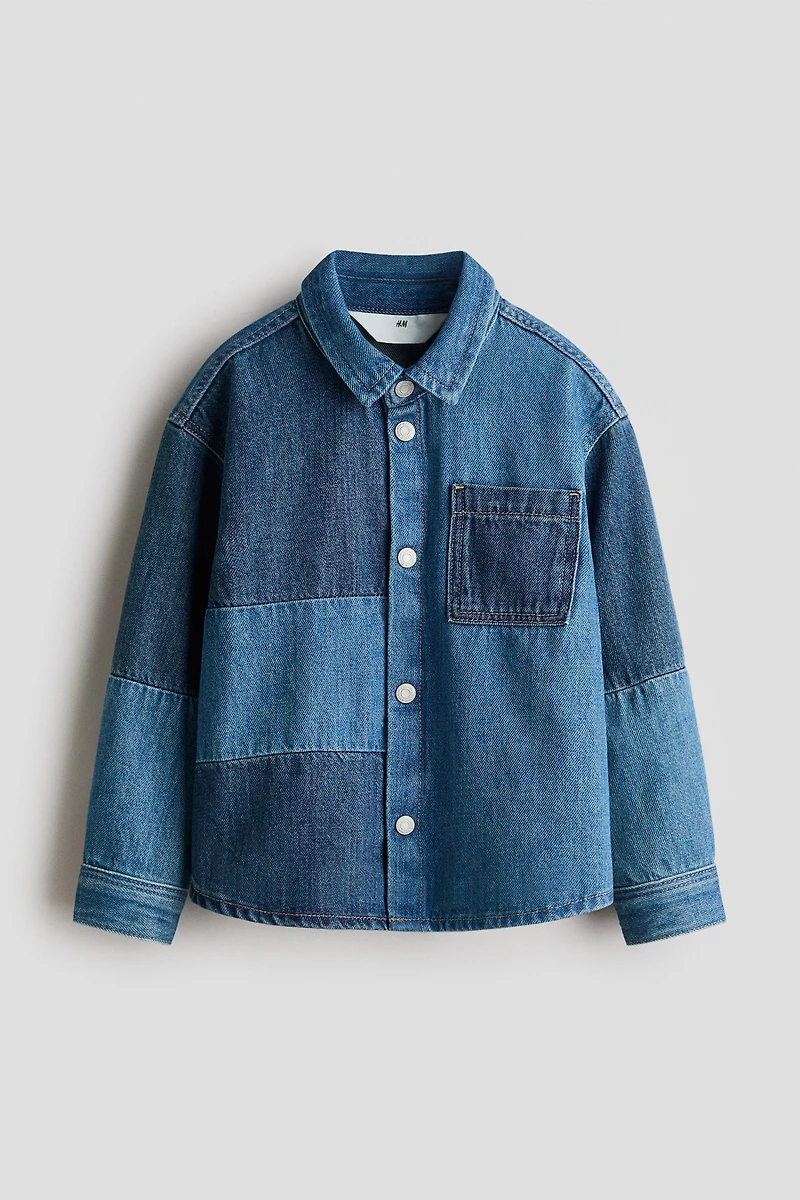 Chemise à contraste de couleur en denim de coton. Modèle avec col rabattu, poche de poitrine plaquée et fermeture par boutons-pression devant. Manches terminées par poignet pressionné. Empiècement dans le dos. Fentes latérales arrondies au bas.