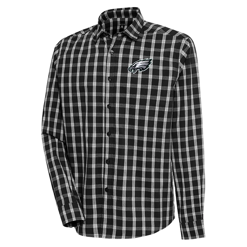 Chemise boutonnée à manches longues noire/grise pour homme des Philadelphia Eagles, modèle Carry, Antigua