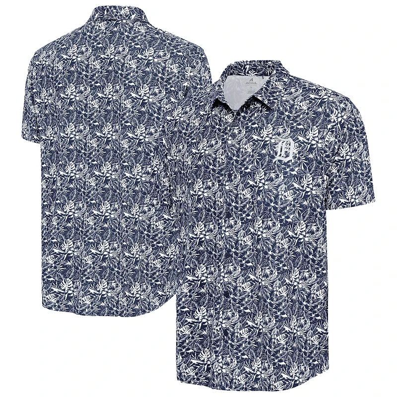 Chemise boutonnée bleu marine Antigua pour homme, style resort, Detroit Tigers