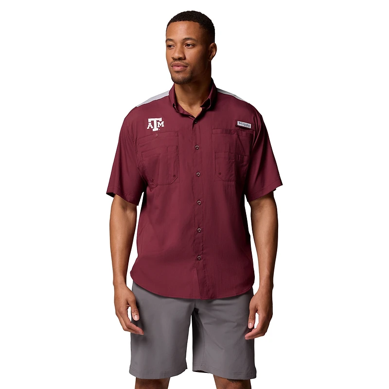 Chemise boutonnée Columbia Maroon Texas A&M Aggies Tamiami Colorblock Omni-Shade pour homme