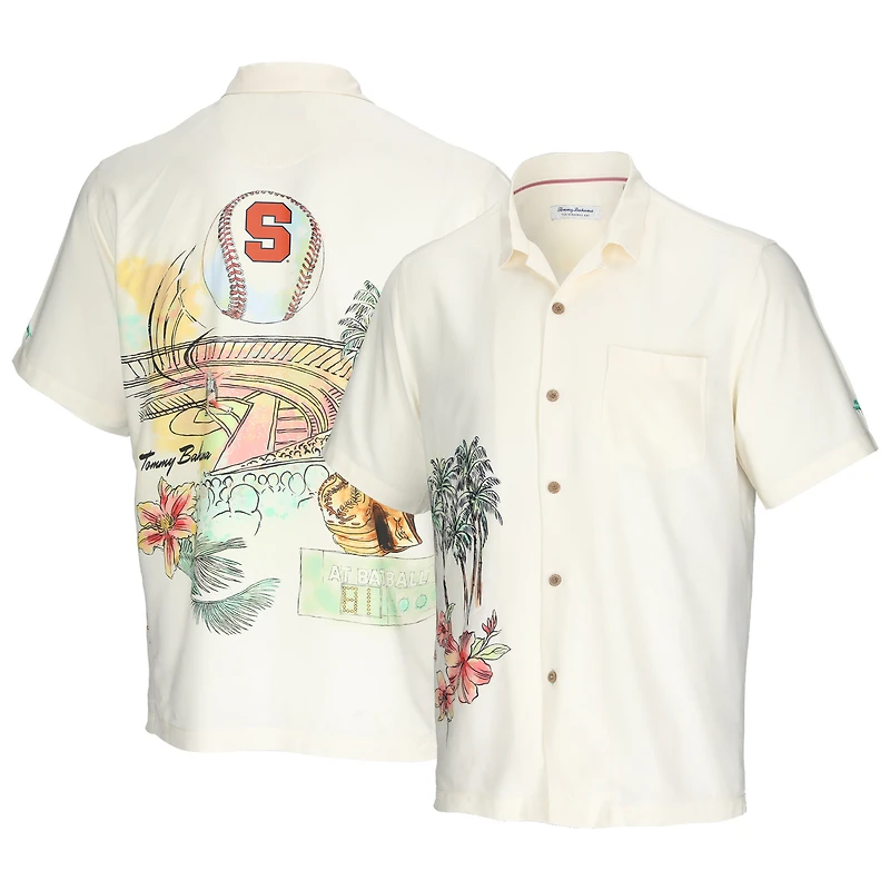 Chemise boutonnée Tommy Bahama crème orange Syracuse Paradise Fly Ball Camp pour homme