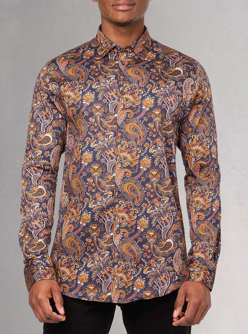 Description :Laissez-vous séduire par le toucher luxueux de cette chemise en coton extensible pour hommes, avec un imprimé paisley et un traitement anti-taches. Sa coupe semi ajustée offre un équilibre parfait entre style et confort.Contenu :97% coton / 3% spandexConseils d'entretien :Lavage en machine à l'eau froide. Ne pas utiliser d'eau de javel. Séchage par culbutage à basse température. Repasser à température chaude si nécessaire sur l'envers. Nettoyage à sec.Modèle :121541