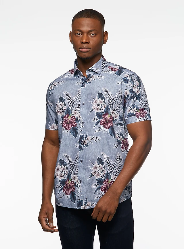 Chemise en popeline à imprimé hibiscus